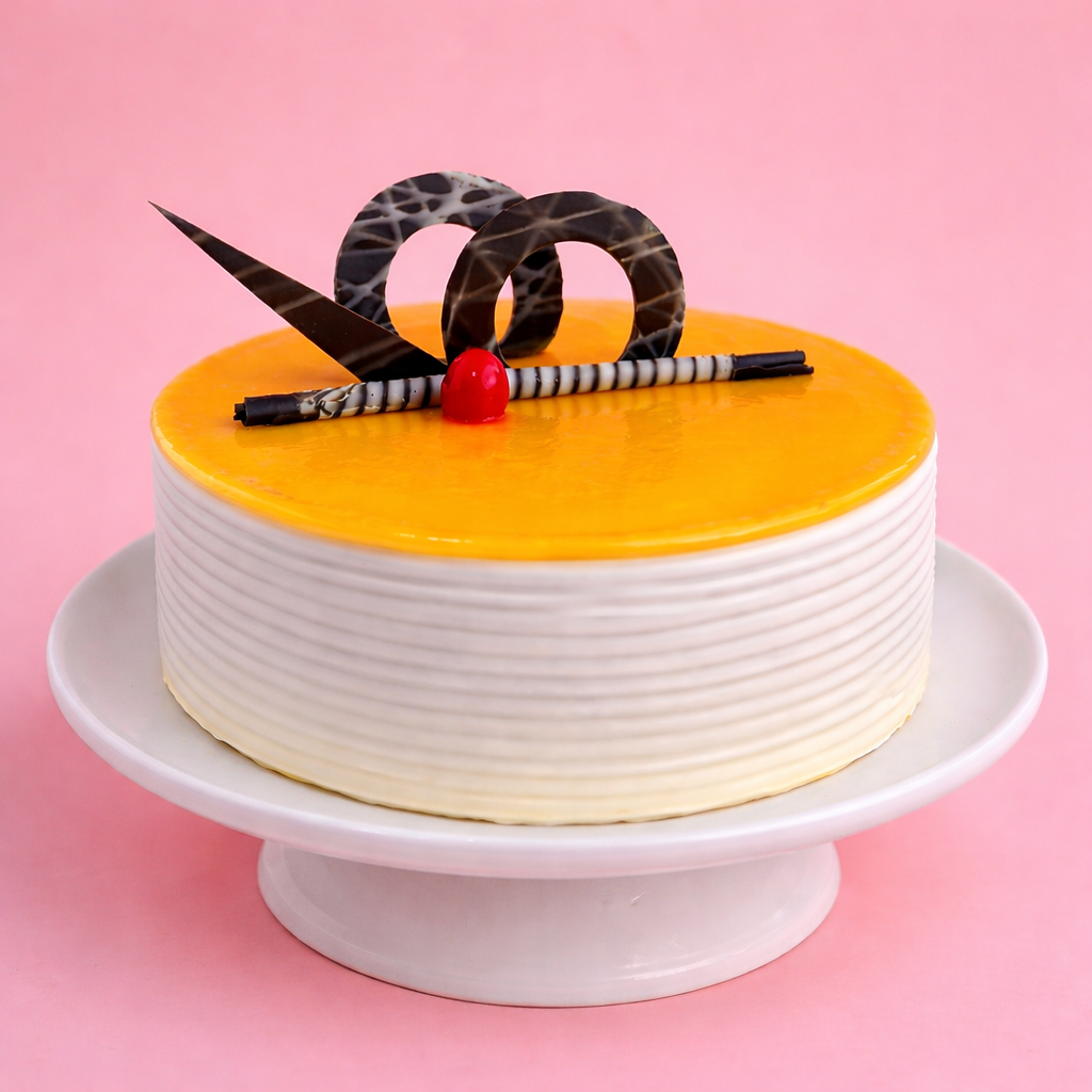 This Mango cake features soft sponge layers topped with a smooth and vibrant mango glaze.